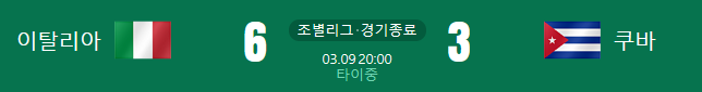 A조 이탈리아 VS 차이니스타이베이 오후8시(20:00)