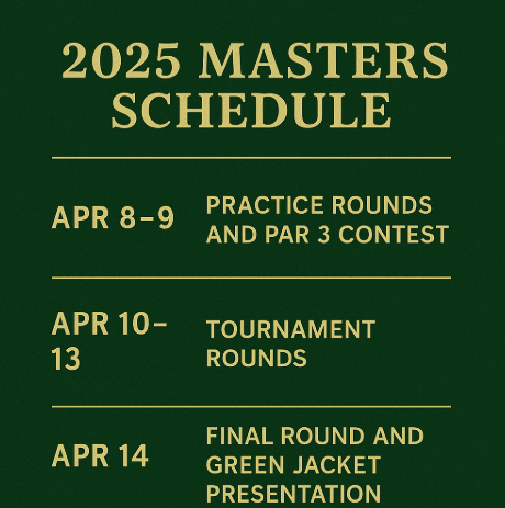 2025년 대회는 4월 10일부터 13일까지 4일간 펼쳐지며, 세계 최고의 골퍼들이 초록색 재킷(Green Jacket)을 차지하기 위한 치열한 승부를 벌입니다.